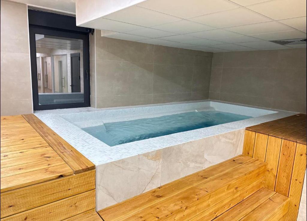 This apartment features a hot tub and a sauna. The apartment's kitchen is available for cooking and storing food. Featuring a terrace with garden views, this apartment also offers heating and a flat-screen TV. The unit offers 1 bed.